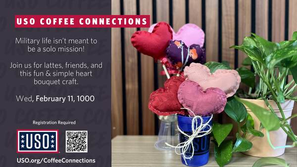 Take a break and join us for Coffee Connections—a relaxed gathering designed for military spouses to meet, share stories, and build meaningful connections. Whether you’re new to the area or simply looking to expand your circle, this is a space to unwind, enjoy great conversation, and sip on a comforting cup of coffee. Come as you are and leave a little more connected. This month features a lovely Valentine craft!