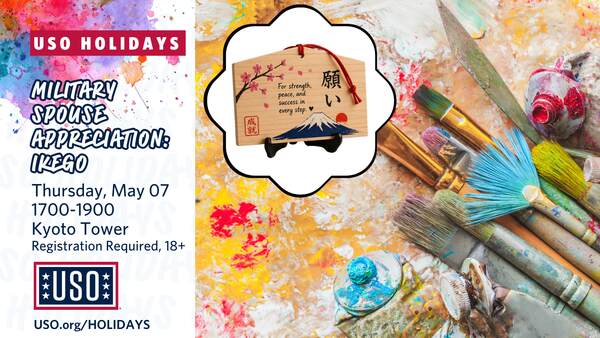 Celebrate the strength, resilience, and heart of military spouses with a meaningful and creative experience. Join us as we paint traditional Japanese EMA wooden plaques—symbols of wishes, good fortune, and success. Take a moment to reflect on your journey, set an intention, and connect with a supportive community while creating a keepsake that represents hope and perseverance.. Registration Required, 18+