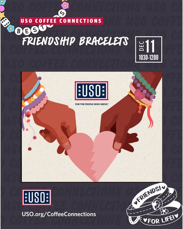 Join us at USO Iwakuni for a cozy and creative Coffee Connections! This month, we’re sipping on hot cocoa and peppermint hot cocoa while crafting friendship bracelets to celebrate connection and community.