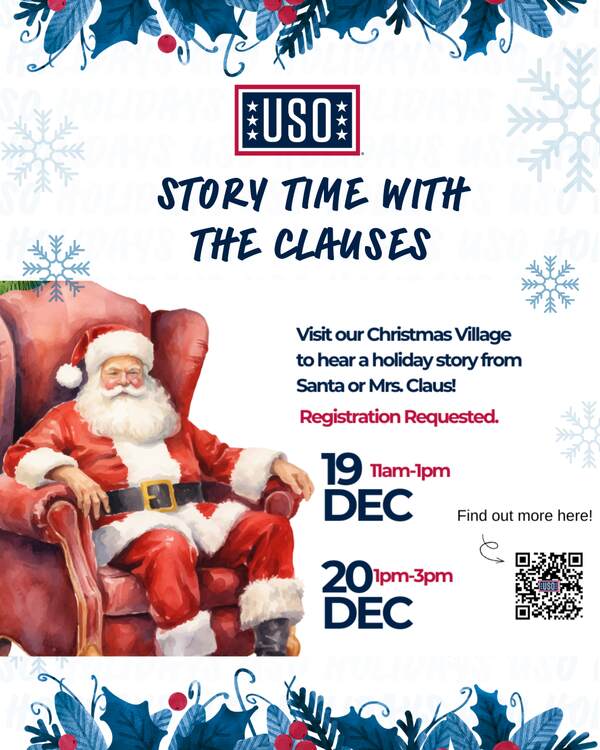 🎅 Story Time with the Clauses & Santa’s Village ❄️ Step into the magic of the North Pole—right here at USO Iwakuni!