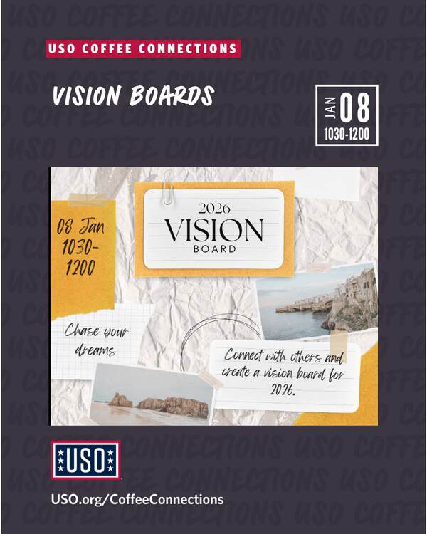 Join us for a relaxed and uplifting Coffee Connections designed especially for military spouses! This month, we’re getting creative and inspired by making vision boards — a fun way to set intentions, dream big, and plan for the future.