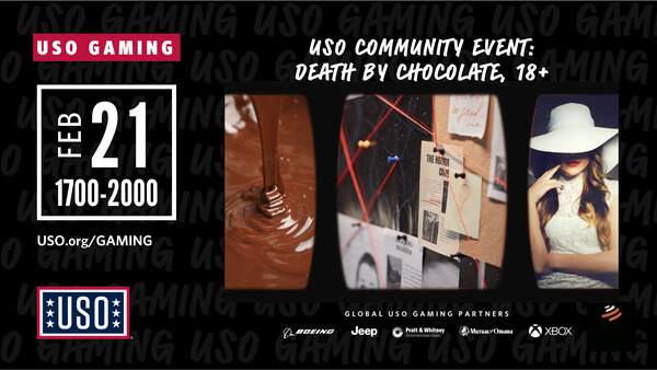 Something wickedly sweet has happened at USO Yokosuka! A case of Death by Chocolate is under investigation, and we need your detective skills to solve it. Enjoy an evening filled with mystery, decadent bites, and thrilling twists. Costumes are encouraged but not required. Registration required. Ages 18+ only.